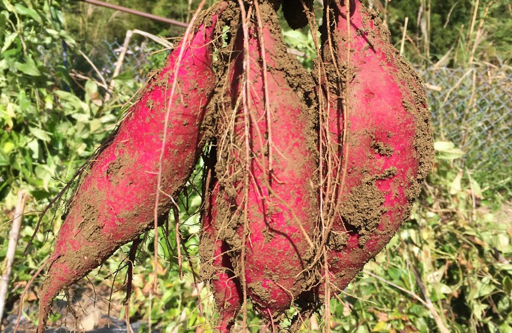 鳴門金時、安納芋、その他いくつかの種類のさつまいもを、無農薬無肥料栽培しています。「芋掘り」は、昔一度は体験したことがあるのでは? 宝探しのような感覚が楽しいさつまいも掘りを、山奥の大自然の中で、どろんこになってやってみませんか。