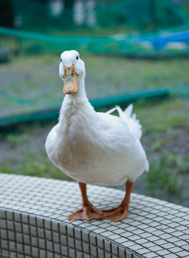 We actually took her in thinking that HE would be a good partner for Kana, but boy were we surprised to see her lay an egg the very next day. She grew up in a duck society so she’s still not used to humans.